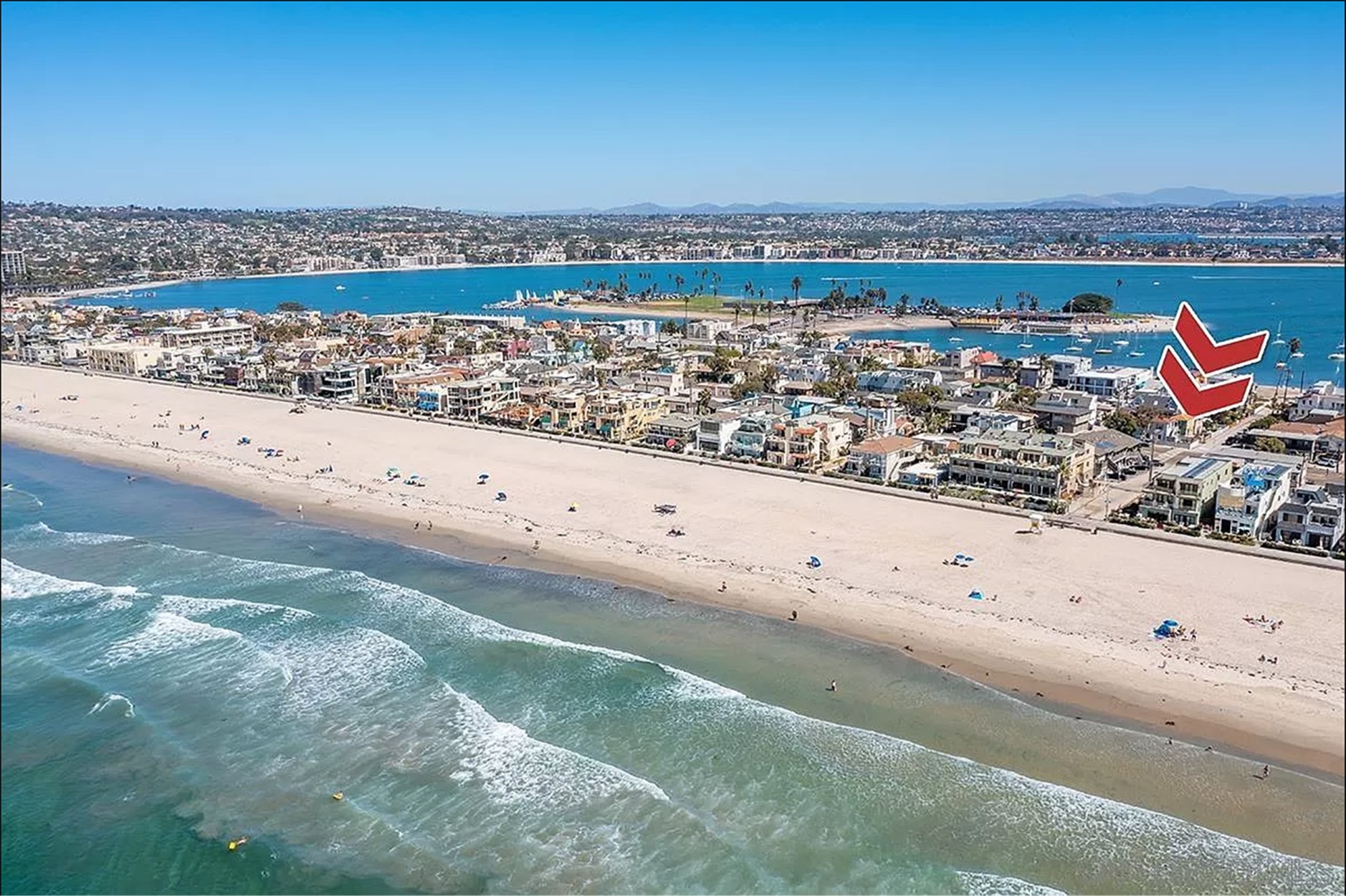 This home is a total gem because from the front deck and the balcony you will enjoy watching sailboats cruise by, people watching on the boardwalk, or checking out the surfers. On many evenings you can watch dazzling fireworks from Sea World light up the sky.